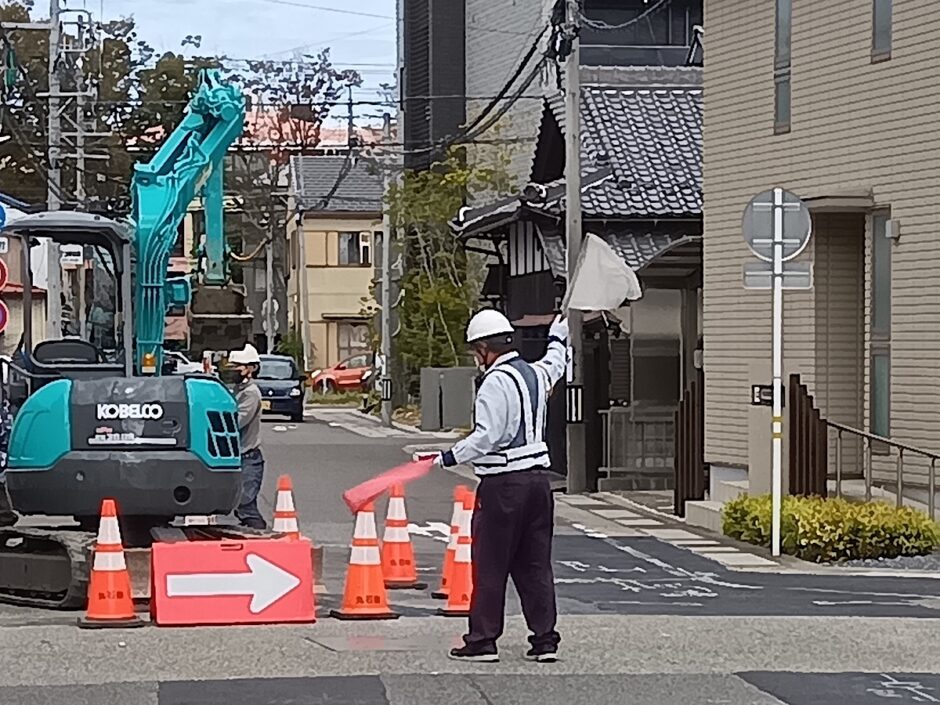 現場全体の安全を見通し、作業員・歩行者・車両の動線を頭に入れた上で的確に指示を出す――まさに安全の司令塔です。