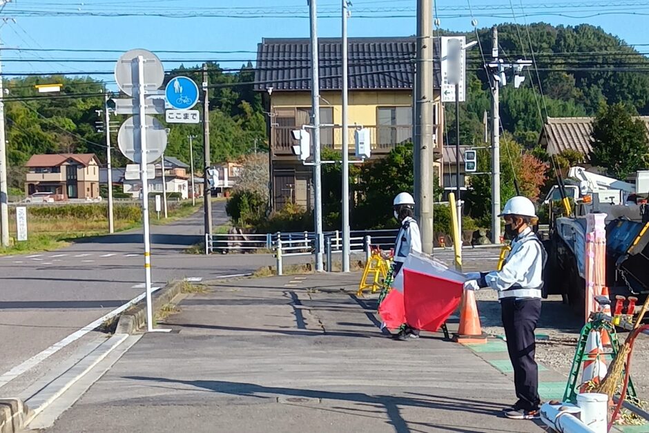 今回の現場は、警備は完全未経験の新人さんと、交通誘導警備業務の経験10年以上を誇るベテラン先輩のペア配置でした。